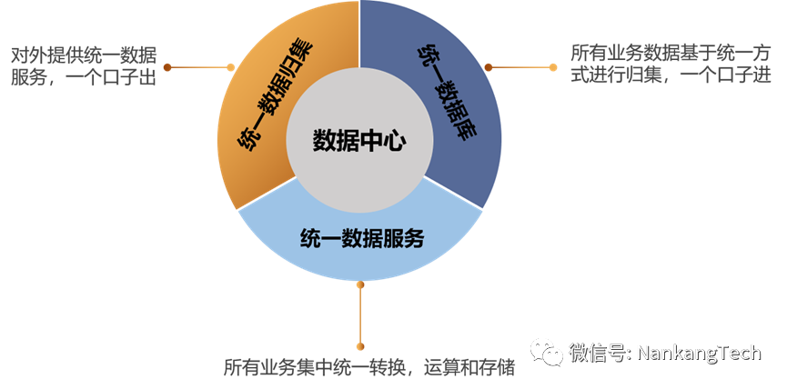 其中,統(tǒng)一數(shù)據(jù)歸集是指對外提供統(tǒng)一數(shù)據(jù)服務(wù),實(shí)現(xiàn)一個口子出;統(tǒng)一數(shù)據(jù)服務(wù)是將所有業(yè)務(wù)數(shù)據(jù)集中統(tǒng)一轉(zhuǎn)換、運(yùn)算和存儲;統(tǒng)一數(shù)據(jù)庫則將所有業(yè)務(wù)數(shù)據(jù)基于統(tǒng)一方式進(jìn)行歸集,實(shí)現(xiàn)一個口子進(jìn)。
