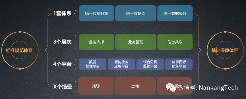 南康科技專注于規(guī)土行業(yè)信息化建設(shè)多年,總結(jié)出以業(yè)務(wù)為導(dǎo)向、以標(biāo)準(zhǔn)為基石、以數(shù)據(jù)為生命、以平臺為根本、以機(jī)制為保障、以系統(tǒng)為應(yīng)用的解決思路。智慧規(guī)土建設(shè)如何從當(dāng)前需求出發(fā),又注重長遠(yuǎn)發(fā)展,既立足高起點(diǎn),又注重資源節(jié)約?對此,南康科技研發(fā)了一套規(guī)土業(yè)務(wù)管理新架構(gòu),采用1+3+4+X模式,優(yōu)化規(guī)土地理基礎(chǔ)信息管理,加強(qiáng)數(shù)據(jù)分析功能挖掘、暢通信息利用與共享,從而打造一個集智能、動態(tài)、便捷、高效和一體化的規(guī)土信息化綜合應(yīng)用平臺。