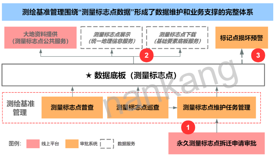 (測(cè)量標(biāo)志點(diǎn)數(shù)據(jù)管理和業(yè)務(wù)支撐體系圖) 測(cè)量基準(zhǔn)管理主要就是針對(duì)測(cè)量標(biāo)志點(diǎn)的管理。為維護(hù)測(cè)量標(biāo)志點(diǎn)底版數(shù)據(jù)的準(zhǔn)確性、有效性服務(wù),南康科技主要從以下三個(gè)方面加強(qiáng)測(cè)量標(biāo)志點(diǎn)管理。 測(cè)量標(biāo)志點(diǎn)普查 五年一次,做特定區(qū)域內(nèi)所有測(cè)量標(biāo)志點(diǎn)現(xiàn)狀情況的普查,會(huì)對(duì)標(biāo)志點(diǎn)的點(diǎn)之記(測(cè)量標(biāo)志點(diǎn)詳細(xì)屬性信息)做更新。 測(cè)量標(biāo)志點(diǎn)巡查 包括針對(duì)所有標(biāo)志點(diǎn)的一年全覆蓋的日常巡查及對(duì)有害預(yù)警的標(biāo)志點(diǎn)的重點(diǎn)巡查,將配合移動(dòng)APP使用,能及時(shí)記錄標(biāo)志點(diǎn)現(xiàn)狀,對(duì)于損壞、損毀情況,及早發(fā)現(xiàn)及早處理。 測(cè)量標(biāo)志點(diǎn)普查維護(hù)任務(wù)管理 測(cè)量標(biāo)志點(diǎn)是所有測(cè)繪業(yè)務(wù)的基礎(chǔ),無(wú)論用哪種測(cè)量方法進(jìn)行測(cè)量都會(huì)需要使用測(cè)量標(biāo)志點(diǎn)。不同業(yè)務(wù)使用方,對(duì)業(yè)務(wù)支撐的方式也有不同需求。南康科技積極參與方案設(shè)計(jì),大膽創(chuàng)新,根據(jù)支撐對(duì)象的不同,提供以下幾種不同的支撐方式: 統(tǒng)一地理信息服務(wù),針對(duì)用戶提供測(cè)量標(biāo)志點(diǎn)位置展示; 基礎(chǔ)要素底板服務(wù),針對(duì)體制外建設(shè)工程相關(guān)用戶比如建設(shè)單位,通過對(duì)外的數(shù)據(jù)底板提供測(cè)量標(biāo)志點(diǎn)下載; 測(cè)量標(biāo)志點(diǎn)公共服務(wù),針對(duì)體制外測(cè)繪資質(zhì)單位提供測(cè)量標(biāo)志點(diǎn)信息; 通過科學(xué)的測(cè)量基礎(chǔ)管理形成了測(cè)量標(biāo)志點(diǎn)的數(shù)據(jù)底板,這既可以為其他業(yè)務(wù)的辦理提供支撐,也可以通過與其他系統(tǒng)聯(lián)動(dòng)及早獲取損害預(yù)警信息。 比如通過與建設(shè)工程規(guī)劃審批系統(tǒng)的聯(lián)動(dòng),損害預(yù)警系統(tǒng)模塊可及早獲取建設(shè)工程項(xiàng)目范圍內(nèi)是否有測(cè)量標(biāo)志點(diǎn)的信息,并對(duì)在建設(shè)工程范圍內(nèi)的測(cè)量標(biāo)志點(diǎn)向其所在下級(jí)單位發(fā)出損害預(yù)警,提醒其及早注意。在建設(shè)工程范圍內(nèi)的標(biāo)志點(diǎn),如果確因項(xiàng)目建設(shè)需要進(jìn)行標(biāo)志點(diǎn)的拆遷,需要提交測(cè)量標(biāo)志點(diǎn)拆遷申請(qǐng),經(jīng)審批通過后,由專業(yè)機(jī)構(gòu)進(jìn)行拆遷。同時(shí)通過更新數(shù)據(jù)底板,實(shí)現(xiàn)測(cè)量標(biāo)志點(diǎn)閉環(huán)管理。 數(shù)字時(shí)代,信息化建設(shè)日新月異。通過實(shí)踐證明,南康科技以“測(cè)量標(biāo)注點(diǎn)數(shù)據(jù)”為抓手建設(shè)數(shù)據(jù)維護(hù)和業(yè)務(wù)支撐的體系是行之有效的。未來(lái),南康科技將繼續(xù)專注于數(shù)字化技術(shù)的發(fā)展和應(yīng)用,為客戶提供更便捷的數(shù)據(jù)應(yīng)用方式和更精準(zhǔn)的管理模式。 供稿部門:GIS事業(yè)部 撰稿人員:杜逸群