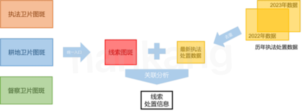 通過(guò)矢量圖形文本化方式,定義標(biāo)準(zhǔn)圖形錄入接口,通過(guò)線上接口形式收集各業(yè)務(wù)部門業(yè)務(wù)圖形,并進(jìn)行質(zhì)檢入庫(kù)。統(tǒng)一的交互入口可將各部委下發(fā)的多格式數(shù)據(jù)進(jìn)行合并,減少后續(xù)套合及掛接服務(wù)復(fù)雜度,同時(shí)可對(duì)部委下發(fā)數(shù)據(jù)進(jìn)行二次校驗(yàn),確保碎面、自相交、重疊、尖角以及狹長(zhǎng)等問題在數(shù)據(jù)導(dǎo)入前已得到解決,避免“臟數(shù)據(jù)”入庫(kù)影響后續(xù)數(shù)據(jù)處理。 將獲取到的衛(wèi)片圖形數(shù)據(jù),與已知的管理數(shù)據(jù)進(jìn)行套合分析,形成最新粒度的圖斑成果,并將管理數(shù)據(jù)標(biāo)記在原圖形上。部衛(wèi)片對(duì)應(yīng)的圖形數(shù)據(jù)可按照不同的管理數(shù)據(jù)進(jìn)行標(biāo)記,相關(guān)的標(biāo)簽通過(guò)相關(guān)單位統(tǒng)一共享服務(wù)共享給各業(yè)務(wù)系統(tǒng)。通過(guò)管理信息數(shù)據(jù)標(biāo)識(shí),可以方便準(zhǔn)確地找出圖斑地類變化原因(如批準(zhǔn)開工建設(shè)或復(fù)墾),同時(shí)將無(wú)管理的地塊篩選出來(lái),由對(duì)應(yīng)業(yè)務(wù)部門進(jìn)行進(jìn)一步處置。 (圖2:套合邏輯圖) 對(duì)歷年的執(zhí)法處置成果進(jìn)行去重,并與衛(wèi)片數(shù)據(jù)進(jìn)行掛接分析,找出圖斑對(duì)應(yīng)的已處置數(shù)據(jù)并返回共享。 (圖3:掛接邏輯圖) 執(zhí)法衛(wèi)片圖斑、耕地衛(wèi)片圖斑、督察衛(wèi)片圖斑等由不同的業(yè)務(wù)條線下發(fā),在確認(rèn)違法后,會(huì)統(tǒng)一推送執(zhí)法機(jī)構(gòu)進(jìn)行處置。鑒于各條業(yè)務(wù)線數(shù)據(jù)下發(fā)時(shí)間不統(tǒng)一,執(zhí)法部門自主發(fā)現(xiàn)的數(shù)據(jù)尚未納入國(guó)家統(tǒng)一考慮,為避免同一位置反復(fù)處置,可將歷年執(zhí)法處置成果進(jìn)行去重并關(guān)聯(lián)到部下發(fā)圖斑上,這樣業(yè)務(wù)部門可參考?xì)v年的執(zhí)法處置成果確認(rèn)是否需要進(jìn)行二次處置,以減輕業(yè)務(wù)部門負(fù)擔(dān)。 供稿部門:GIS事業(yè)部 撰稿人員:申志