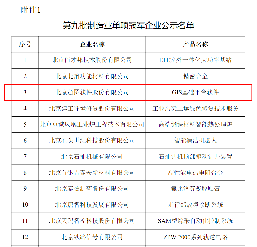 近日,工業(yè)和信息化部公示第九批制造業(yè)單項(xiàng)冠軍企業(yè)名單,超圖軟件GIS基礎(chǔ)平臺(tái)軟件入選。這一殊榮是對(duì)超圖軟件在GIS領(lǐng)域技術(shù)實(shí)力、市場(chǎng)地位及創(chuàng)新能力的權(quán)威認(rèn)可。超圖軟件深耕GIS領(lǐng)域近三十年,實(shí)現(xiàn)了多項(xiàng)核心共性關(guān)鍵技術(shù)的重大突破。核心產(chǎn)品SuperMap GIS基礎(chǔ)平臺(tái)軟件擁有完全自主知識(shí)產(chǎn)權(quán),在技術(shù)架構(gòu)、功能完整性和二次開發(fā)能力等維度持續(xù)迭代創(chuàng)新,產(chǎn)品競(jìng)爭(zhēng)力穩(wěn)步提升。